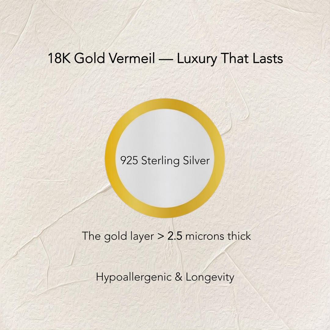 Premium 18K gold over sterling silver — richer color, longer lasting, and more durable than standard gold plating.