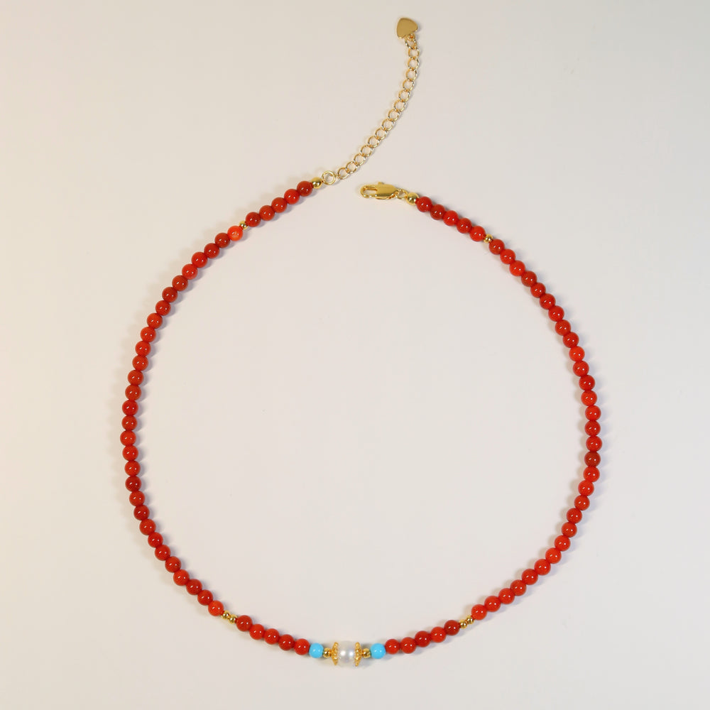 The Flame Harmony Necklace — Red Agate, Pearl & Turquoise