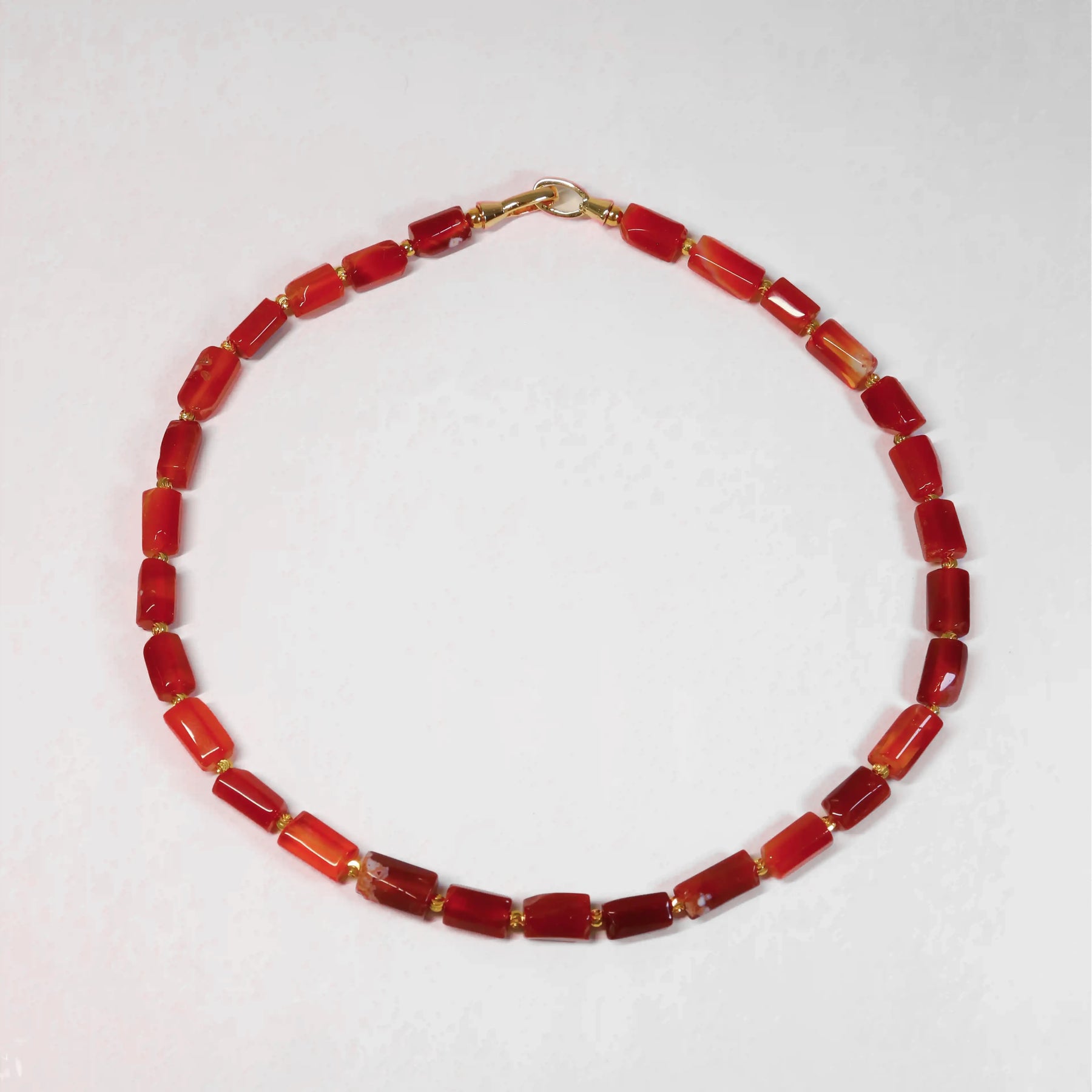 Handcrafted from natural Hexagonal Red Agate, this necklace embodies that same fearless energy.